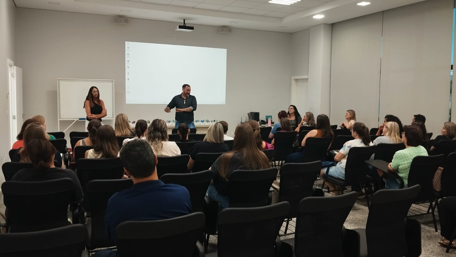 A formação foi conduzida pela equipe multidisciplinar composta pela assessora Thassiane Terre de Meira, pela psicóloga Cristiane Fujywara, pela fonoaudióloga Joice Costa, pelas assistentes sociais Roseli de Castro e Débora Gerke, e pelas neuropsicopedagogas Adriani Much, Célia Bach, Débora Geib, Eliane Grisa e Mara Mallmann.