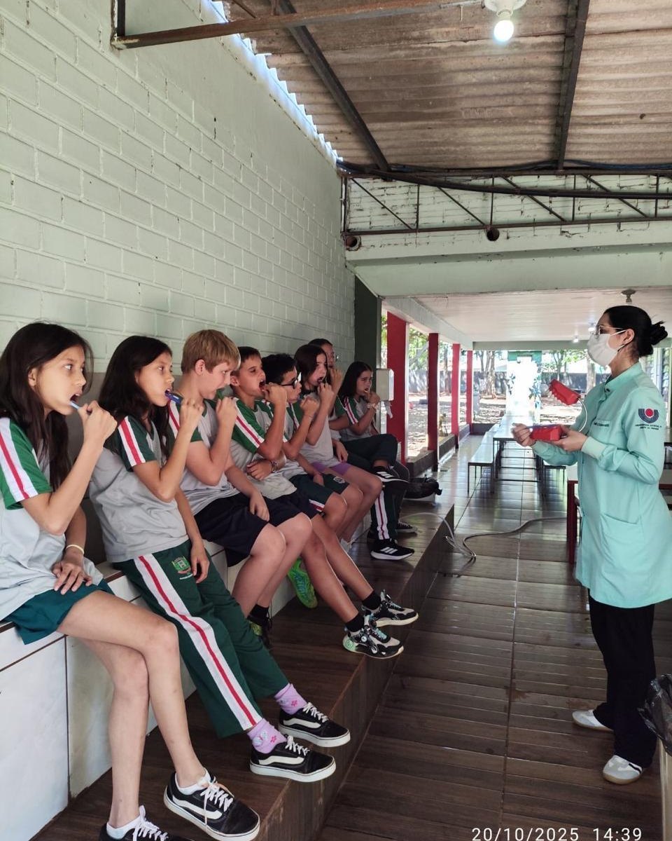 As estratégias adotadas incluem escovação supervisionada, aplicação tópica de flúor, triagens odontológicas periódicas e ações educativas, como palestras, teatros e demonstrações práticas. Além de reduzir significativamente os agravos bucais, essas atividades fortalecem o vínculo entre profissionais de saúde, comunidade escolar e famílias, aproximando as crianças das Unidades Básicas de Saúde quando há necessidade de acompanhamento ou tratamento, por meio de comunicados encaminhados aos pais.