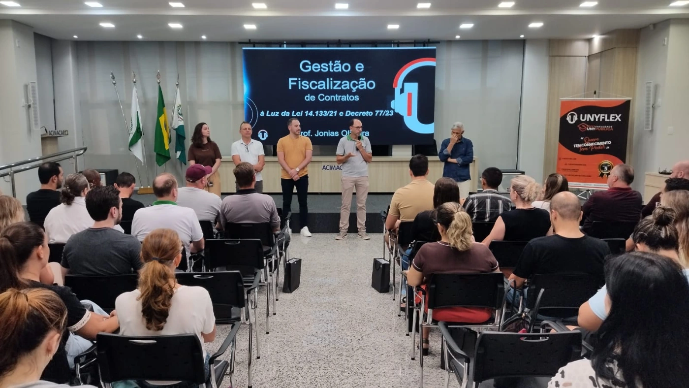 Funcionários públicos do município participam nesta quinta-feira (23) e sexta-feira (24) de um curso de capacitação com foco em gestão e fiscalização contratual. A abertura ocorreu na manhã desta quinta-feira, na Associação Comercial e Empresarial de Marechal Cândido Rondon (Acimacar), e contou com a presença do Secretário de Administração, Valmir Monteiro, e do vice-prefeito Vanderlei Sauer.