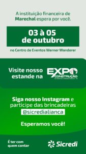 Durante a 1ª Expo da Construção Marechal, que inicia nesta sexta-feira (3) no Centro de Eventos, o Sicredi Aliança marcará presença como patrocinador oficial e levará ao público uma série de atrativos.