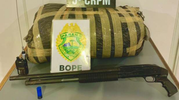 No local, além da droga, foram apreendidos uma espingarda calibre 12 e um radiocomunicador.