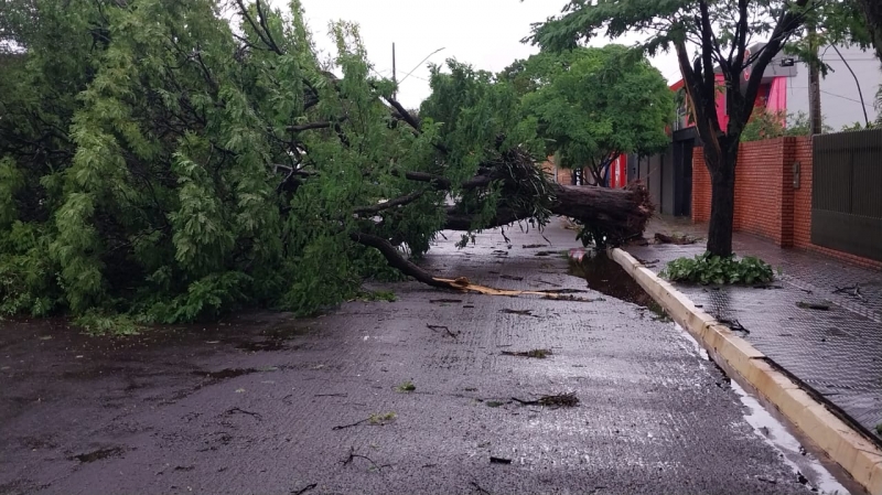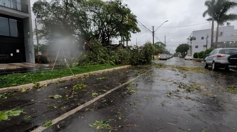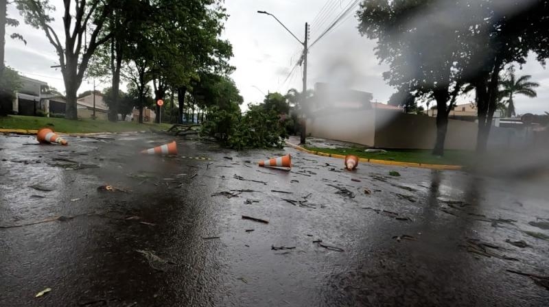 Diversos bairros registraram quedas de galhos e árvores sobre as ruas, além de casas destelhadas e danos materiais.