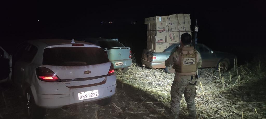 Durante patrulhamento de rotina na madrugada desta terça-feira (28), equipe policial avistou comboio de veículos transitando em alta velocidade por estrada rural da região.