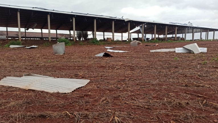 Em outro lado da propriedade, caixas d’água de cerca de uma tonelada tombaram com a força do vento chegando próximo a residência. Apesar dos grandes estragos os danos foram somente materiais. Na residência do proprietário apenas algumas telhas foram levantadas.