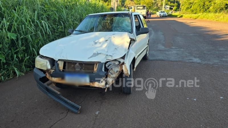 De acordo com informações apuradas, a grave colisão envolveu uma motocicleta que seguia no sentido Margarida á Marechal e o veículo Uno que estava em sentido contrário. Com o violento impacto frontal, o motociclista acabou sendo arremessado sobre o para-brisa frontal do veículo.