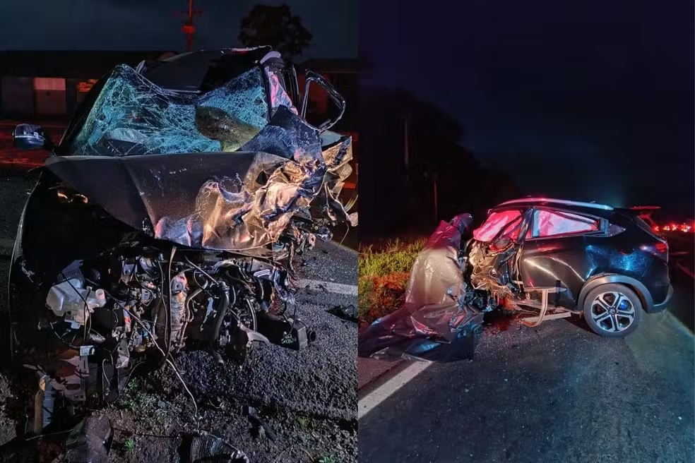 Imagens feitas no local mostram que a parte dianteira dos veículos ficou completamente destruída.