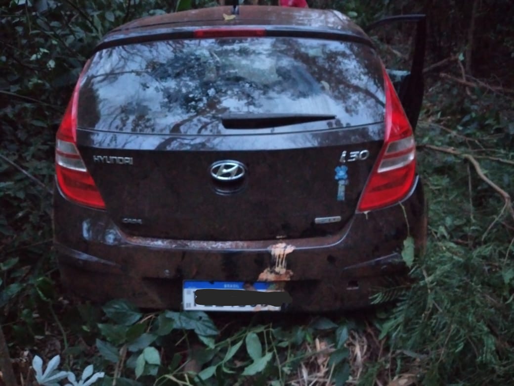 O automóvel que era ocupado por três pessoas desceu um barranco e registrou danos de grande monta.