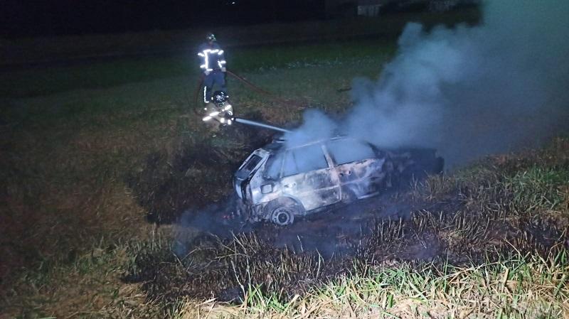 Um incêndio destruiu completamente um carro no início da madrugada desta quarta-feira (21) na BR-163, entre Toledo e Cascavel, em frente ao posto de combustíveis Corujão.