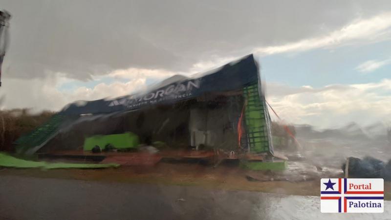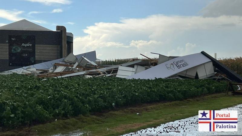 A chuva e os fortes ventos registrados na tarde desta terça-feira (09) em Palotina provocaram estragos na área onde está sendo preparado o Dia de Campo, inclusive, deixando o saldo de cinco pessoas com ferimentos.