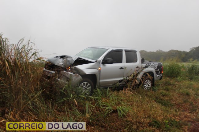 Com a frenagem, a VW Amarok que seguida atrás da viatura não conseguiu parar a tempo, colidindo na traseira e a jogando para uma lavoura, cerca de 20 metros de onde a colisão ocorreu. A Amarok também perdeu o controle e parou no acostamento.