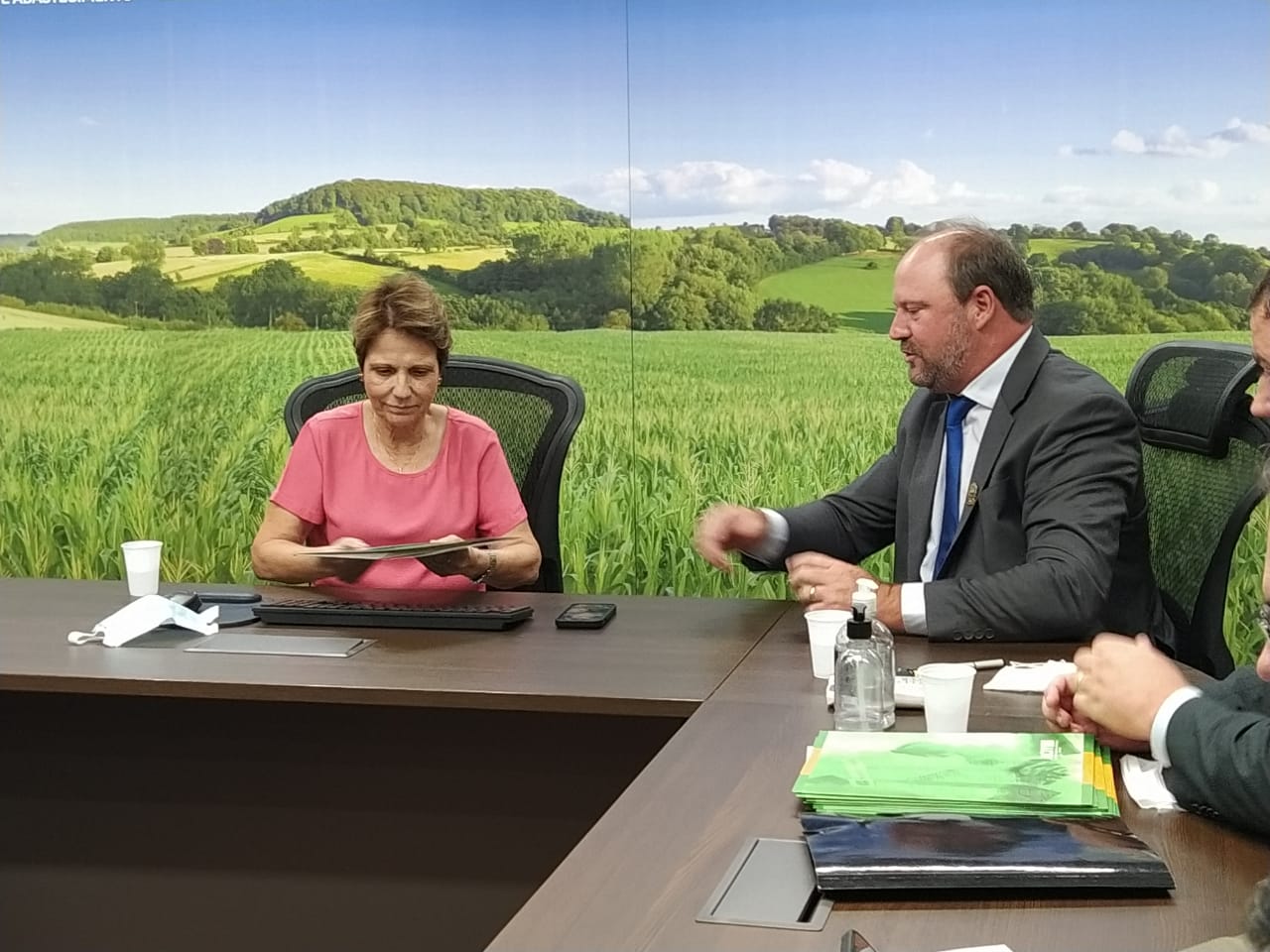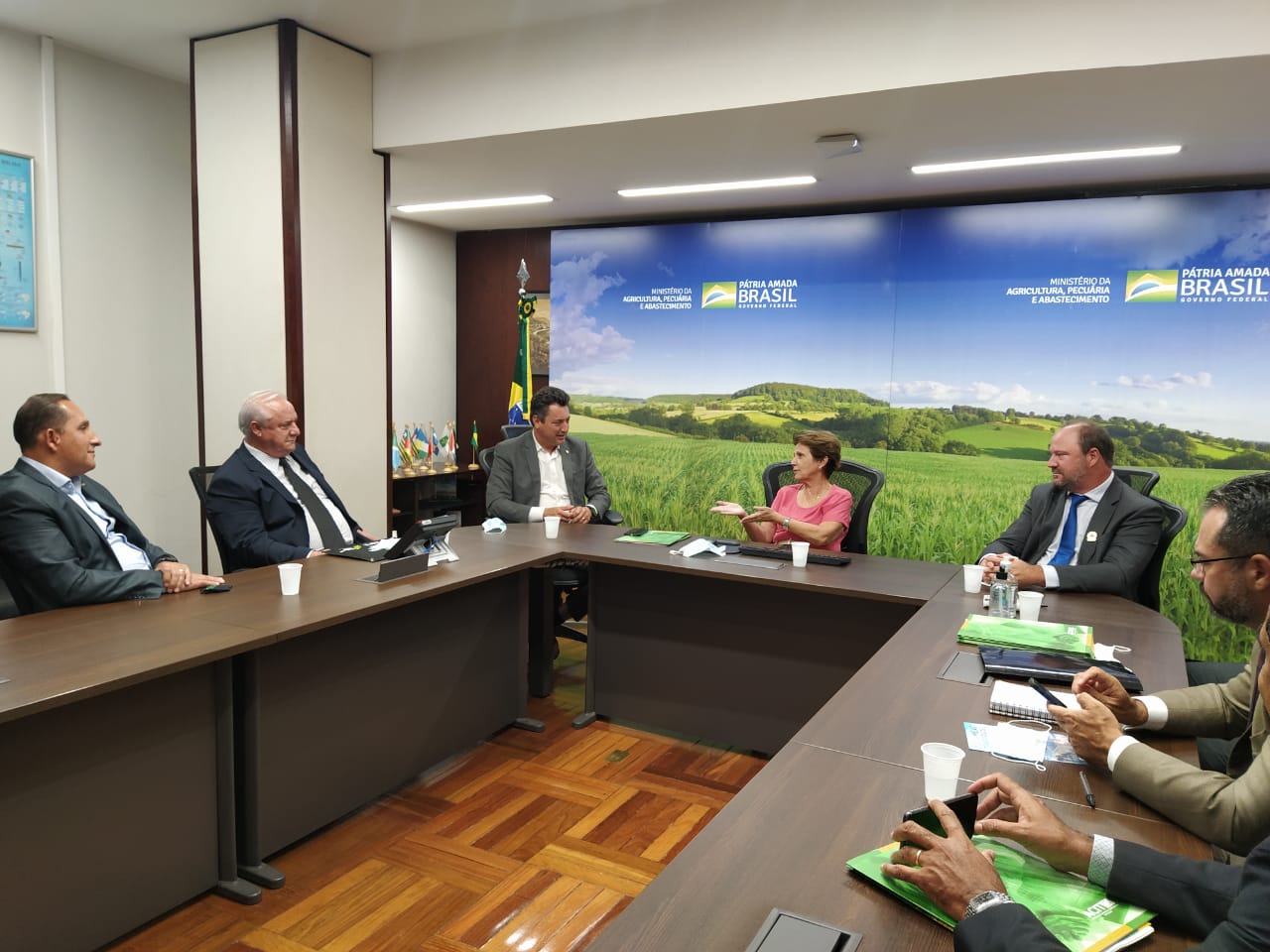 Audiência também foi mantida com a Ministra da Agricultura e Meio Ambiente, Tereza Cristina, e dentre os muitos assuntos foi discutida a crise na suinocultura.