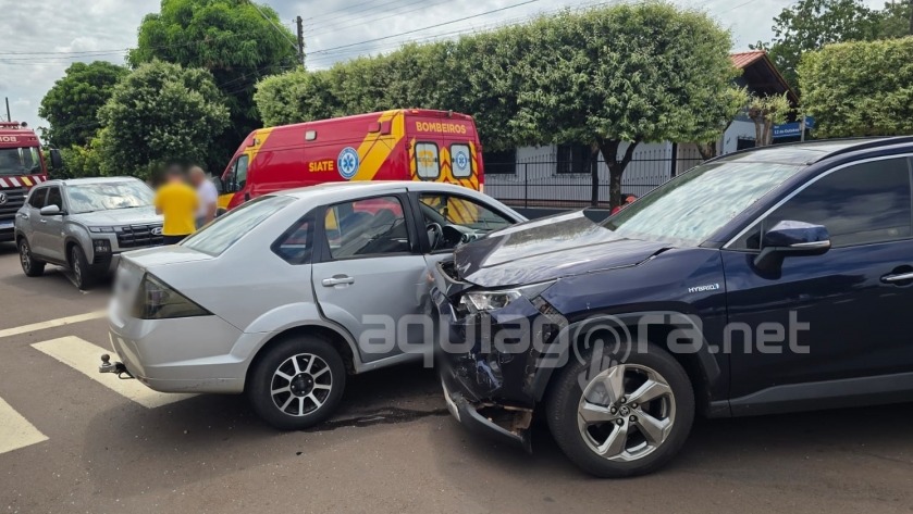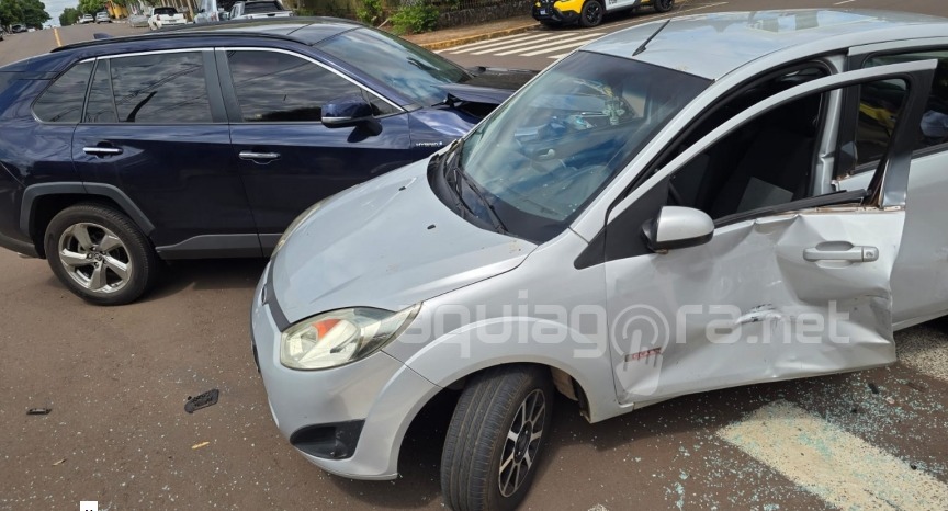 Colisão envolveu três veículos no cruzamento das ruas 12 de Outubro e Paraná; vítima sofreu ferimentos no rosto