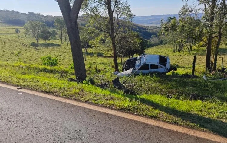 Conforme relato do condutor, ele transitava no sentido Santa Helena a Diamante d’Oeste , acabou saindo da pista e colidiu contra a árvore.